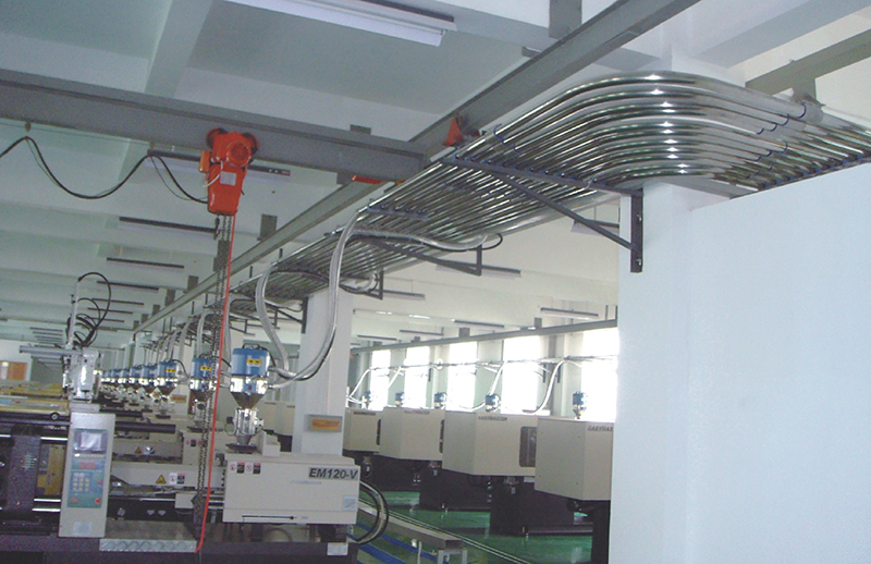 中央供料系统是为注塑车间的塑料商品出产而规划的,完成了不间断无人化接连成型作业??梢谰菪枨蟾亩柿现掷?、多色彩资料的组合运用方法,完成上色...